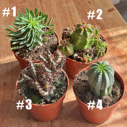 4 different Euphorbia, Euphorbia obesa/polygona/horrida/Polyacantha in 5.5cm pot