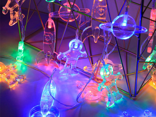 Multicolor Astronaut Space Fairy String Lights, Flashable Battery Powered Lights