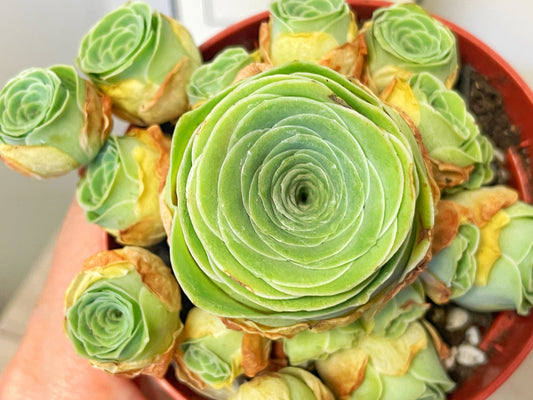 Multi Heads Aeonium Rosette, Green Mountain Rose, Succulent, Bonsai, House Plants, in 8cm Pot