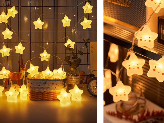 Star Smile Face Fairy String Lights, Warm White Flashable Battery Powered Light