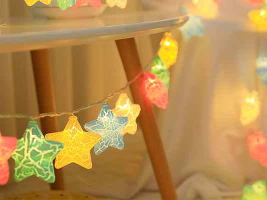 Textured Cracked Star Fairy String Lights, Warm White Colorful Flashable Battery Powered Light